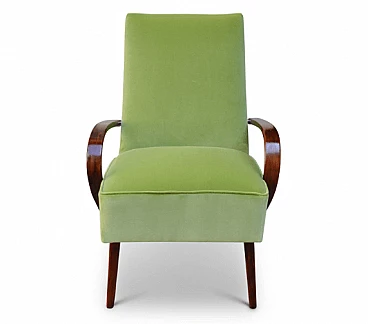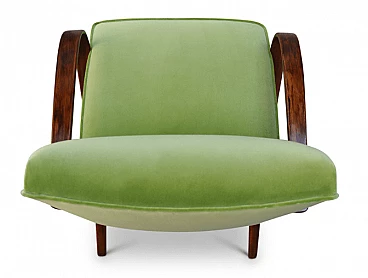 Poltrona Art Déco in legno e velluto verde, anni '30