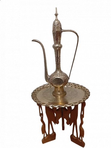 Aftaba in rame cesellato a mano con schegge di rubini e tavolino, 1965