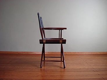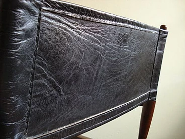 Sedia da regista in palissandro e pelle nera di M. Hayat & Bros, anni '70