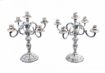 Coppia di candelieri a cinque lumi in argento di Peruggia & C., primo '900