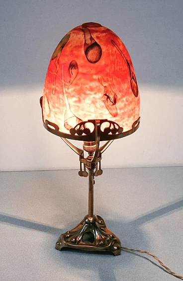 Lampada da tavolo in vetro soffiato e ottone, anni '40