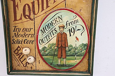 Questa insegna per collezionisti è davvero speciale. Realizzata in legno con decorazioni in rilievo e dipinta a mano. L'insegna pubblicitaria era dedicata all'abbigliamento e all'attrezzatura da golf. Ottime condizioni. Vi consigliamo di guardare bene in dettaglio tutte le foto allegate. Proposta ad un ottimo prezzo trattabile vi invitiamo ad inviarci le vostre proposte di acquisto le valuteremo con piacere. Misure con cornice 76 x 44 cm. Imballo professionale, spedizioni assicurate con corrieri, consegna su appuntamento solo al piano strada.
