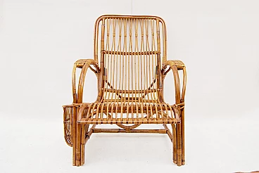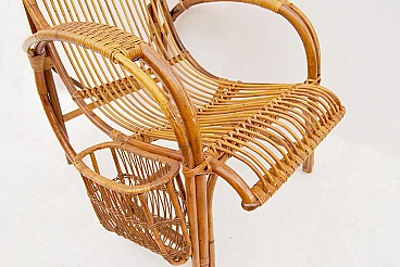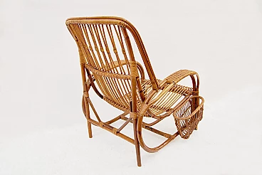 Poltrona in bambù e vimini con tasca portariviste, anni '50
