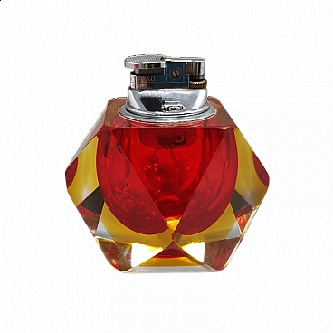 Accendino da tavolo rosso e giallo in vetro di Murano sommerso di Flavio Poli per Seguso, anni '60