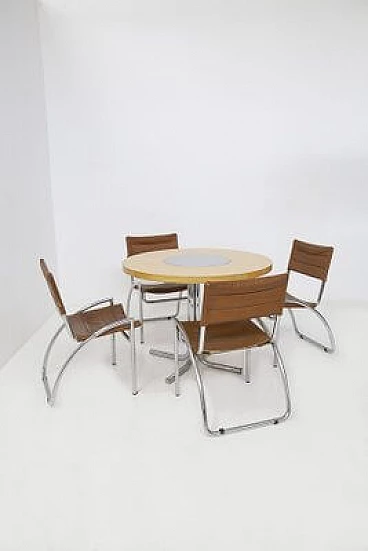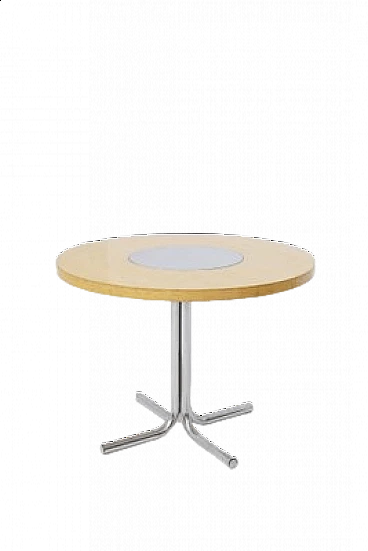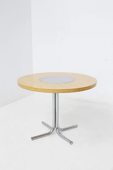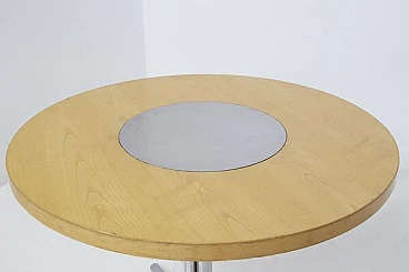 Tavolo tondo in acciaio e legno di Gae Aulenti per Elam, anni '50