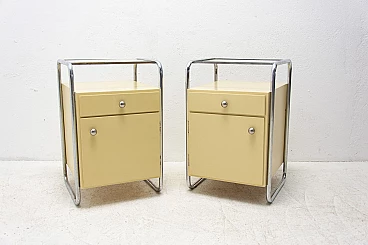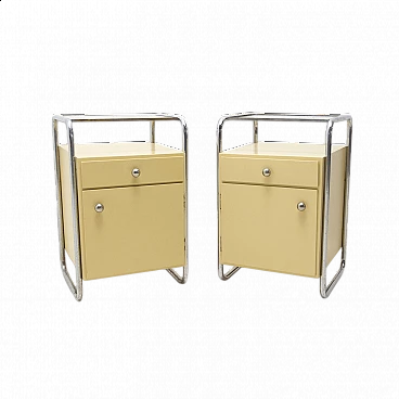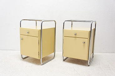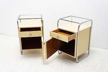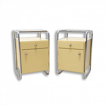 Coppia di comodini in legno con elementi cromati Bauhaus, anni '30