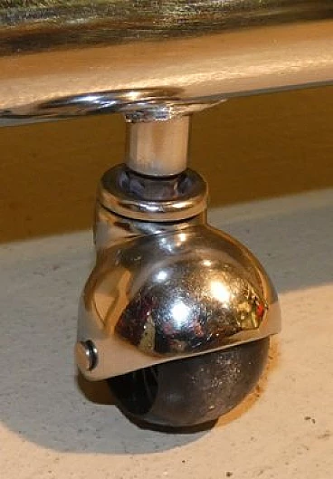 Si presta a diverse funzioni grazie alle sue ruote a sfera che restano nascoste alla base delle gambe... rendendo il carrello molto lineare ed elegante. Può essere un porta televisore, un carrello bar o coffee table etc etc.