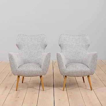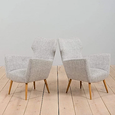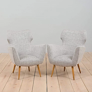 Coppia di poltrone da salotto ritappezzate in stile Gio Ponti, anni '50