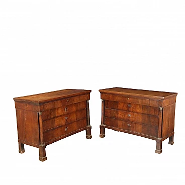 Coppia di cassettoni in noce con montanti a colonna Impero, '800