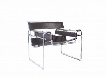 Sedia Wassily in pelle marrone di Marcel Breuer per Gavina, anni '70