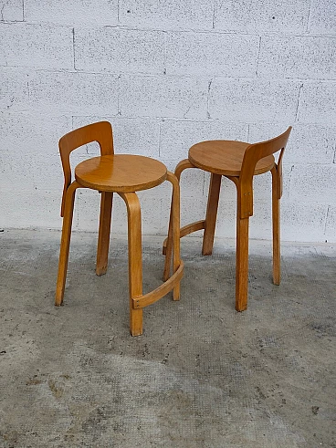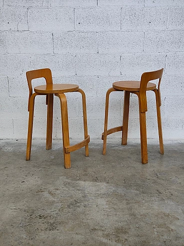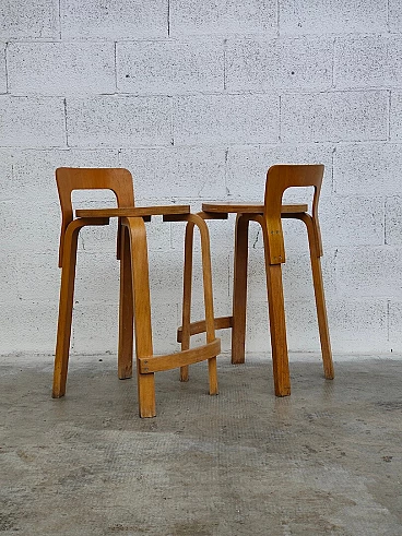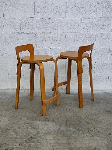 Lo sgabello modello K65 è stato progettato da Alvar Aalto tra il 1933 e il 1935. L'altezza è pensata per combinazioni con tavoli o banconi alti. Lo schienale ribassato offre il giusto sostegno alla schiena e la traversa curva nella parte inferiore offre un buon supporto per i piedi. Il modello K65 è caratterizzato dall'uso del multistrato di betulla curvato. La serie K65 rappresenta stile e sostanza, fin dagli anni '30. Prodotto in Finlandia da Artek.
