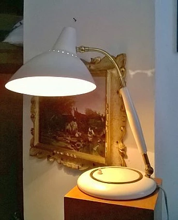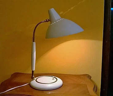 Lampada da tavolo D941 in alluminio, ottone e legno di Stilnovo, anni '50