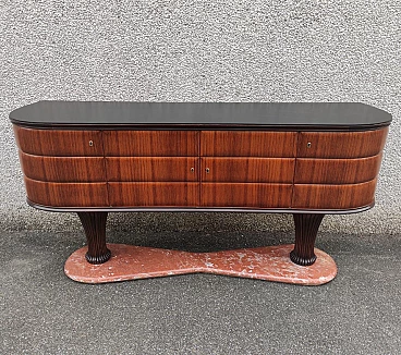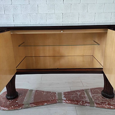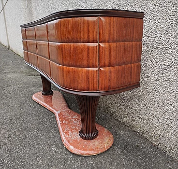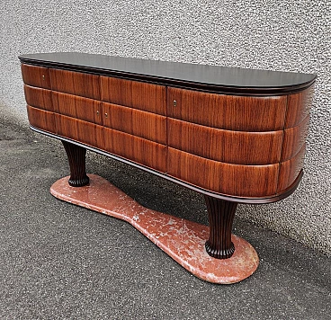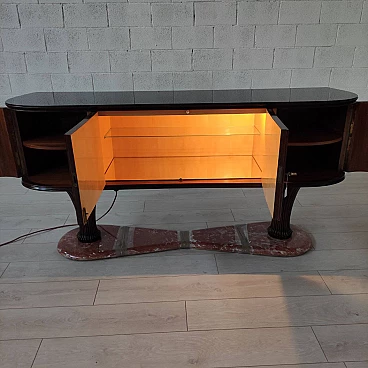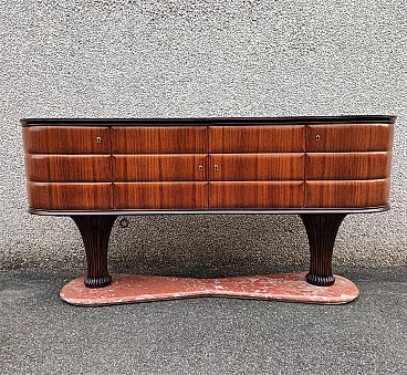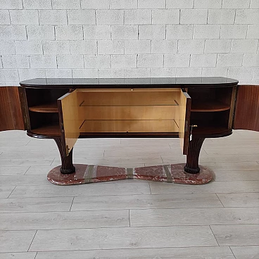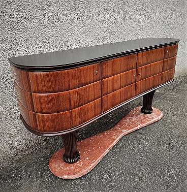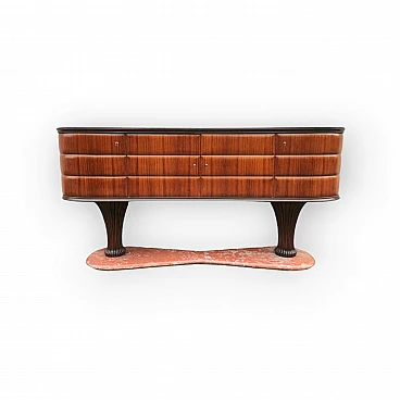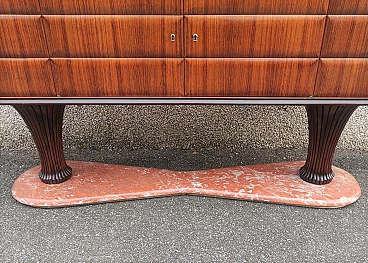 Credenza in legno con base in marmo rosso Francia di Vittorio Dassi, anni '50