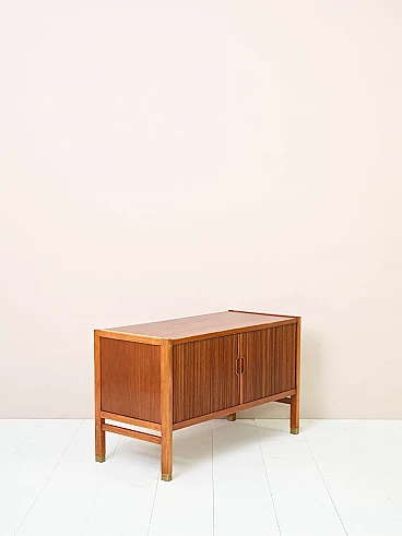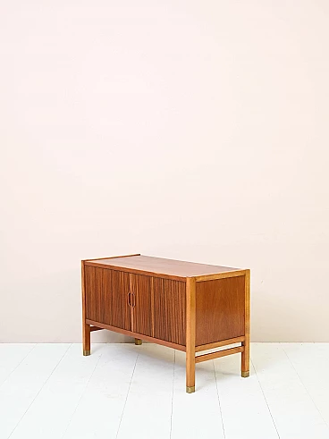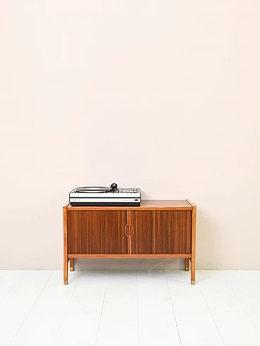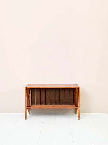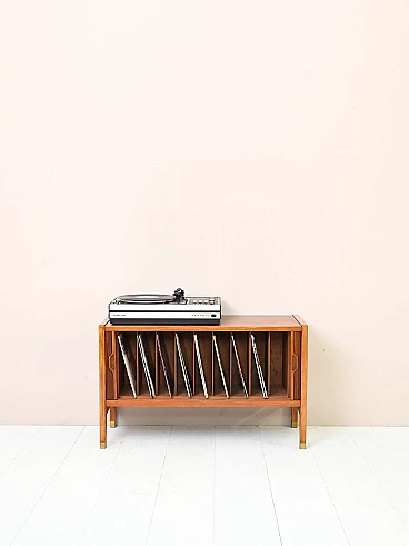 Mobile in teak per giradischi e vinili con ante a scomparsa, anni '50