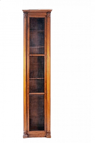 Favolosa libreria a colonna in legno progettata per importanti studi risalenti al XIX secolo, di pregiata manifattura italiana. La libreria è disegnata come una colonna, in realtà ha una forma rettangolare stretta e molto alta. La libreria è realizzata in legno chiaro lucido di alta qualità, solido e resistente, tipicamente classico. Alla base sono presenti elementi decorativi in legno lucido, tipici delle basi delle colonne antiche. Questo elemento è presente anche sotto forma di capitello nella parte superiore. Alla sommità dei capitelli si trova un elemento a forma di architrave in legno, che chiude la colonna. Internamente si distinguono quattro ripiani, divisi per mezzo di mensole in legno. L'interno è molto spazioso, adatto a conservare i libri. Questi vani interni sono chiusi da una porta con telaio a forma rettangolare dello stesso legno della struttura, con annessa chiave; mentre l'interno del telaio è foderato con una rete adatta a esporre enciclopedie o cimeli. La presenza di una serratura con chiave permette di riporre al suo interno oggetti di un certo valore, sia economico che soprattutto affettivo. La colonna è molto classica ed elegante ed è adatta a importanti studi legali, notarili, medici e così via, nello stile pomposo ed elegante che questo elemento conferisce.