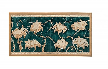 Serie di piastrelle in ceramica verde, ambra e oro prodotte in Italia da Ceramica Bardelli Milano su disegno di Giò Ponti. Ogni piastrella misura 20 x 20 cm. La serie di 8 piastrelle del Macromosaico è estremamente rara: "Donne sui fiori". Si tratta di un decoro iconico di uno dei più influenti designer italiani del XX secolo.