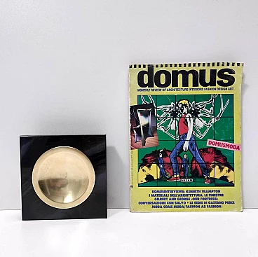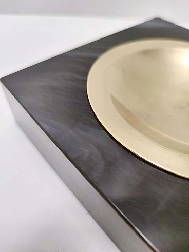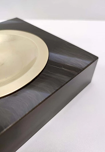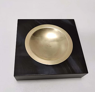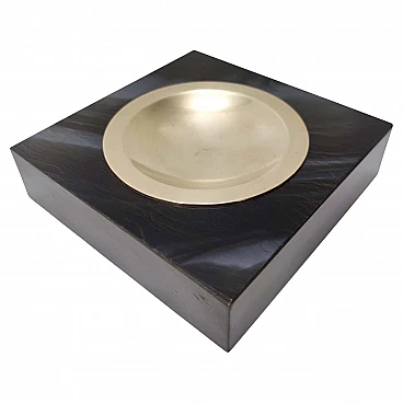 Posacenere quadrato in ottone e finto marmo nero di Willy Rizzo, anni '70