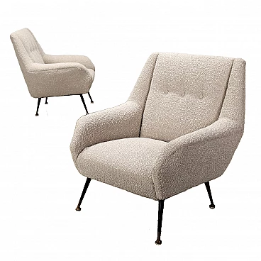 Coppia di poltrone con rivestimento in tessuto e gambe in metallo, anni '60