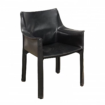 Sedia Cab 413 con braccioli; struttura in metallo con rivestimento in cuoio.