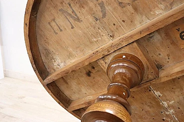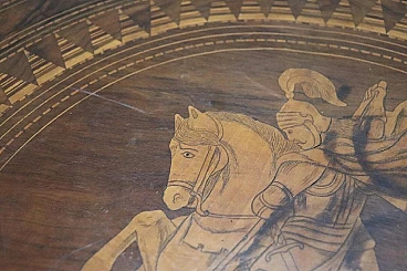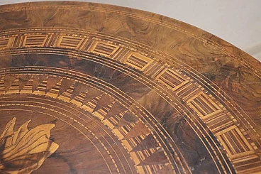 Tavolo rotondo in noce con piano intarsiato, metà '800