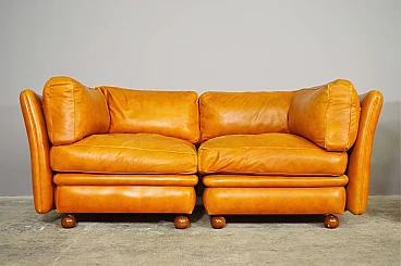 Divano componibile in pelle arancione per Poltrona Frau, anni '70