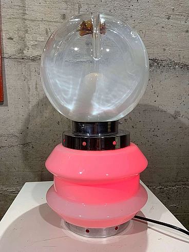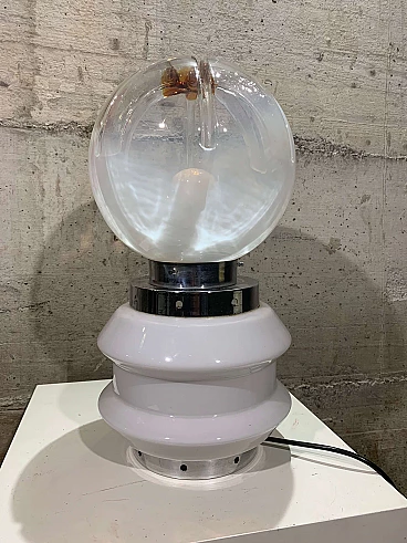 Lampada da tavolo in vetro opalino bianco e trasparente, anni '70