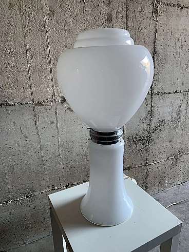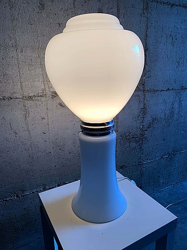 Lampada da tavolo in vetro opalino bianco e metallo, anni '70