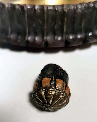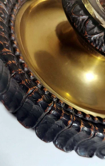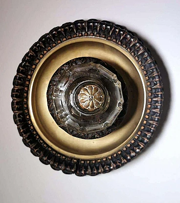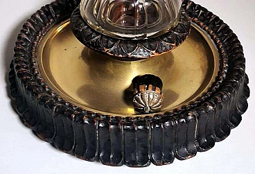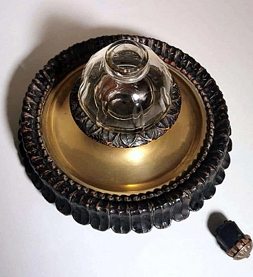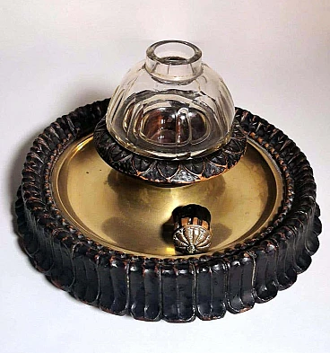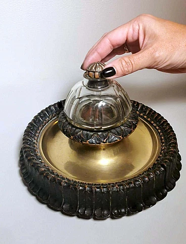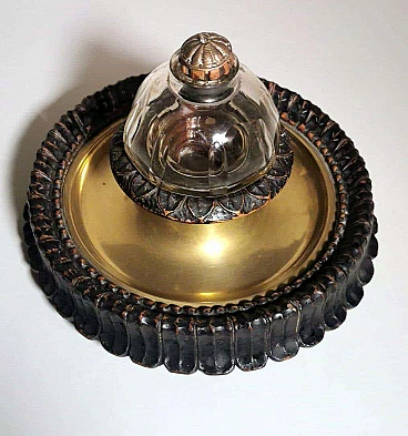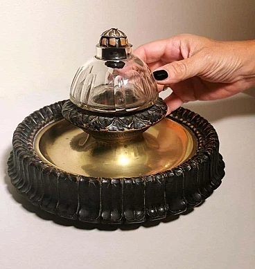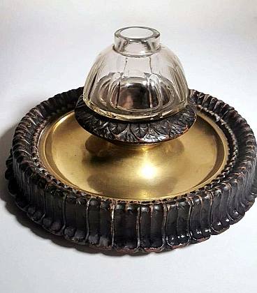 Calamaio in ottone, cristallo e legno in stile Napoleone III, fine '800