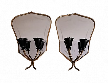 Coppia di applique con specchio decorato in pietra serena, anni '50