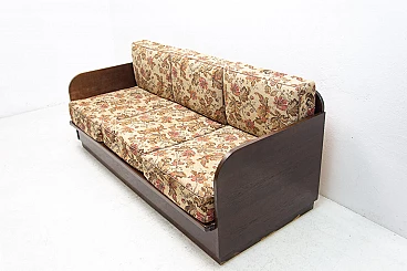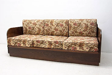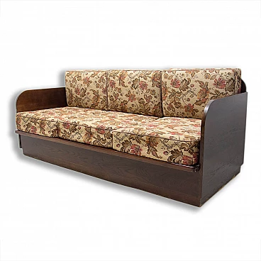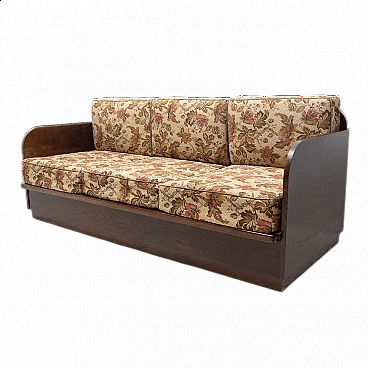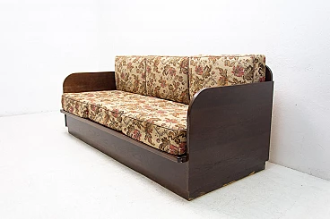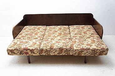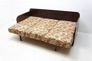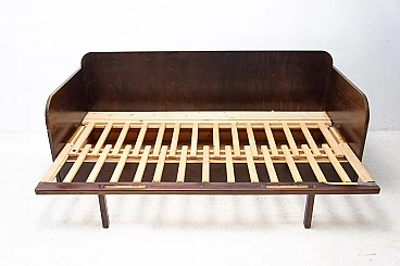 Divano letto pieghevole in legno impiallacciato faggio, anni '50