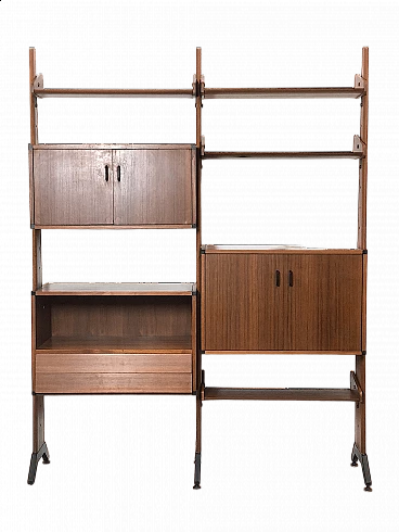 Libreria modulare in teak e metallo di Vittorio Dassi, anni '60