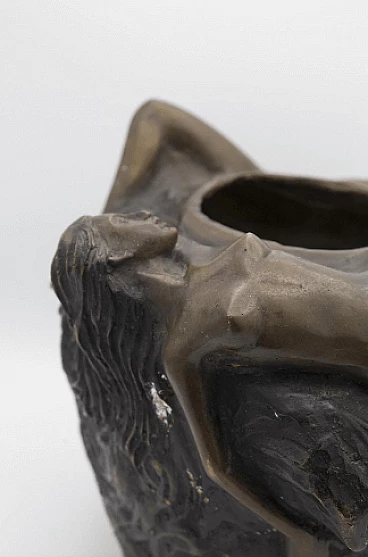 Vaso Art Nouveau in bronzo con coppia di nudi femminili, inizio '900