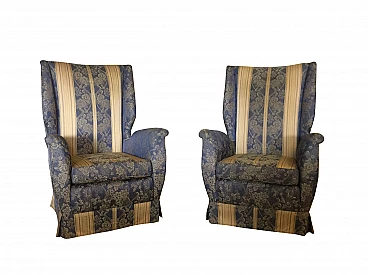 Coppia di poltrone degli anni '50 disegnate da Gio Ponti per l'azienda ISA Bergamo , struttura in legno imbottita, piedi conici in legno, necessitano di essere rifoderate