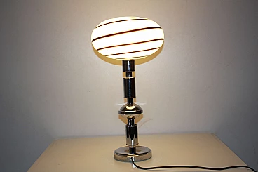 Lampada da tavolo con paralume in vetro di Murano zebrato, '60