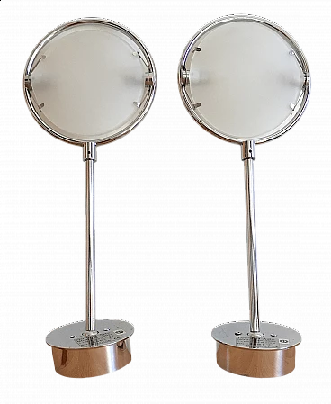 Coppia di lampade Nobi 3022 di Metis Lighting per Fontana Arte, anni '90. Possono essere usate come lampade da soffitto o da parete. Struttura in metallo cromato, diffusore in vetro stampato, sabbiato e temperato di forma circolare; quest'ultimo può ruotare su se stesso e orientare la luce in diverse direzioni. Necessitano di lampadine alogene 150 W R7s/80 (incluse).