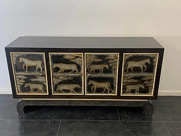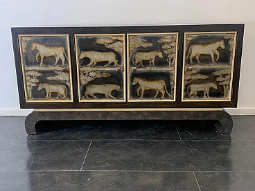 Credenza in legno laccato con pannelli decorati di Lam Lee Group, anni '90
