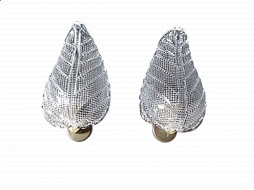 Coppia di applique a forma di foglia in vetro di Murano, anni '50