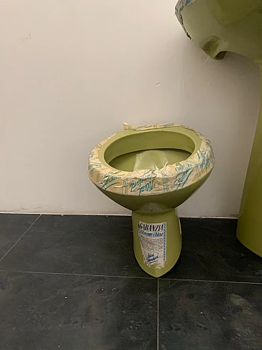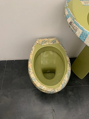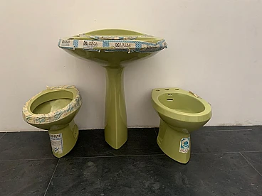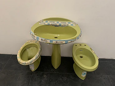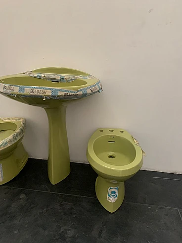 Lavandino, bidet e wc verdi Ellisse di Gio Ponti di Ideal Standard, anni '70
