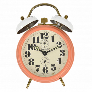 Sveglia meccanica in acciaio, vetro e ottone per Jerger, anni '70