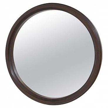 Incredibile specchio da parete in legno scuro disegnato negli anni '60, di pregiata manifattura italiana. Lo specchio è realizzato interamente in legno scuro, con una forma rotonda molto semplice. La cornice è molto bella e incornicia lo specchio vero e proprio. Lo specchio è semplicemente meraviglioso, adatto ad ambienti eleganti, oppure può essere collocato su caminetti o consolle. Lo specchio presenta solo lievissimi graffi, nessuna rottura o danno.