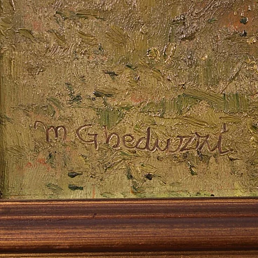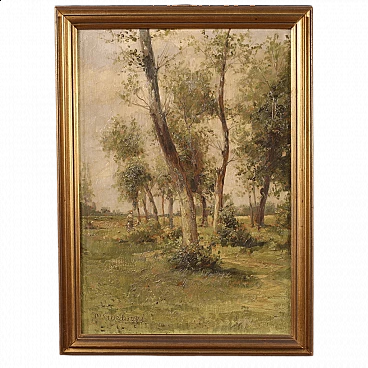 Paesaggio con alberi, olio su tavola di Mario Gheduzzi, primo '900