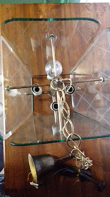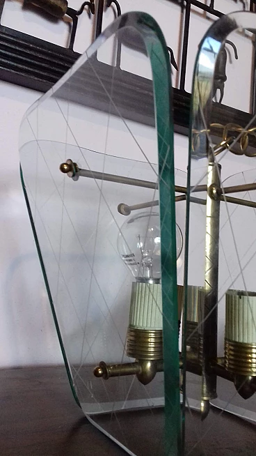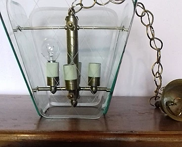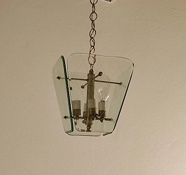 Lampadario in ottone e vetro attribuito a Pietro Chiesa per Fortana Arte, anni '40