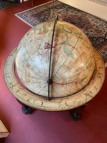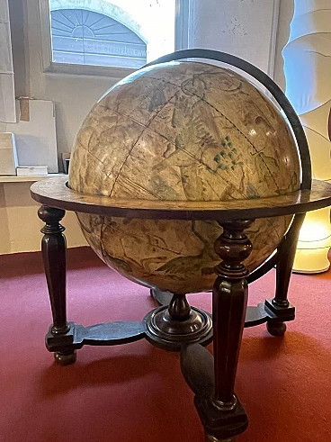 Mappamondo da terra dipinto con disegni vegetali, fine '800