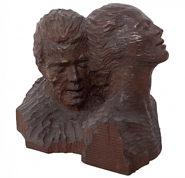 Scultura in legno di coppia di amanti attribuita a Pinuccio Sciola, anni '60