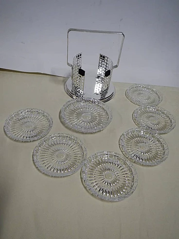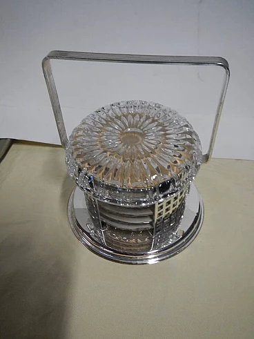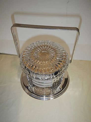 6 Sottobicchieri e sottobottiglia con contenitore, anni '60