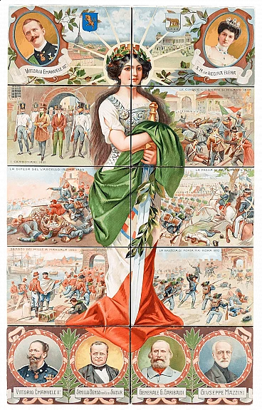 Serie di dieci cartoline per il Cinquantesimo Anniversario della proclamazione del Regno d'Italia, 1911. 14 x 9 cm ciascuna. Condizioni ottime, valutare le foto.