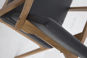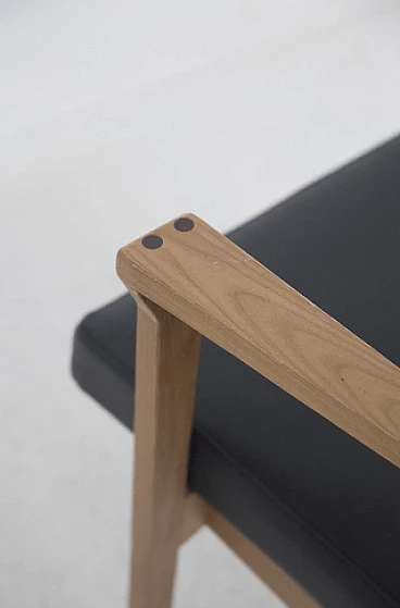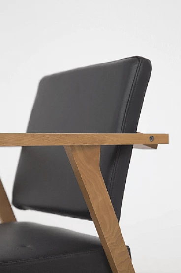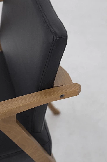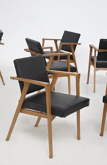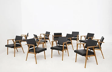 12 Sedie in legno e pelle nera attribuite a Franco Albini, anni '50