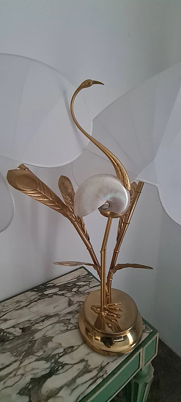 Lampada da tavolo con airone di Antonio Pavia, anni '70