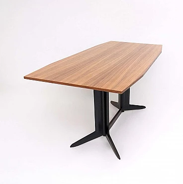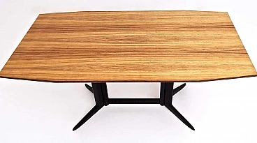 Tavolo con piano in legno zebrano e struttura in legno ebanizzato, anni '60