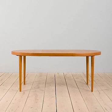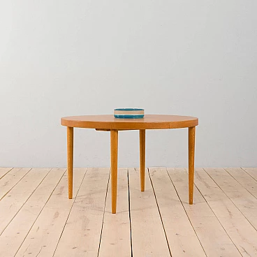 Tavolo rotondo allungabile in rovere attribuito a Kai Kristiansen, anni '60